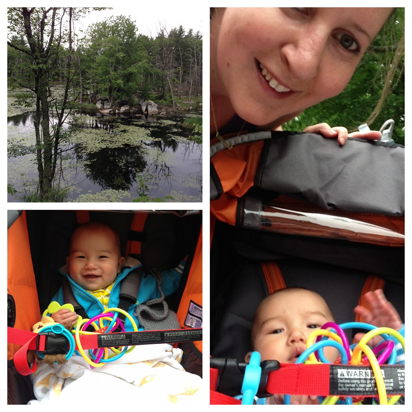 Yesterday, I went for my first run with our BOB stroller. I drove out to the Windham Rail Trail not too far from us because its a smooth, paved running trail. There were so many people out running, biking and rollerblading. I was so happy to be out running that I went a little too far and ended up rocking out 3 miles. Let me tell you that running with a stroller is no joke. I am sore Everywhere today! :) Looking forward to more of these.